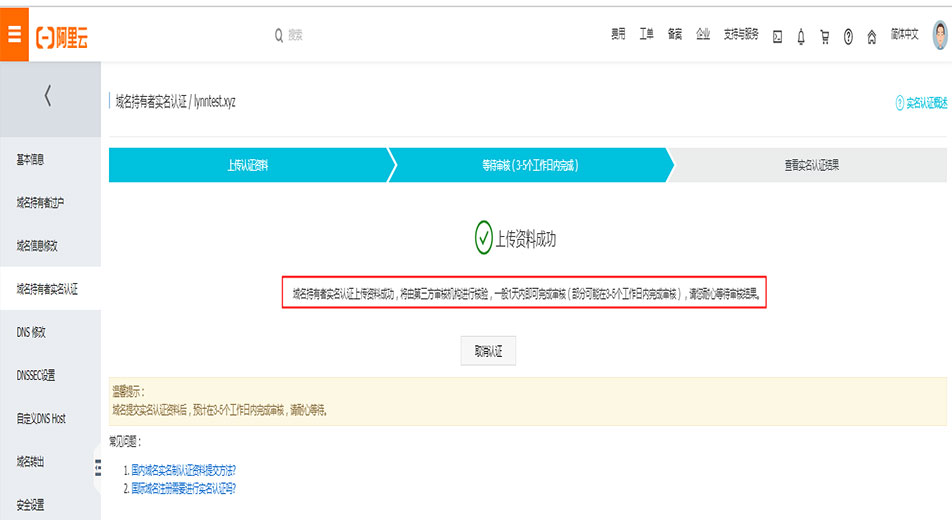 9)進(jìn)行域名的實(shí)名認(rèn)證